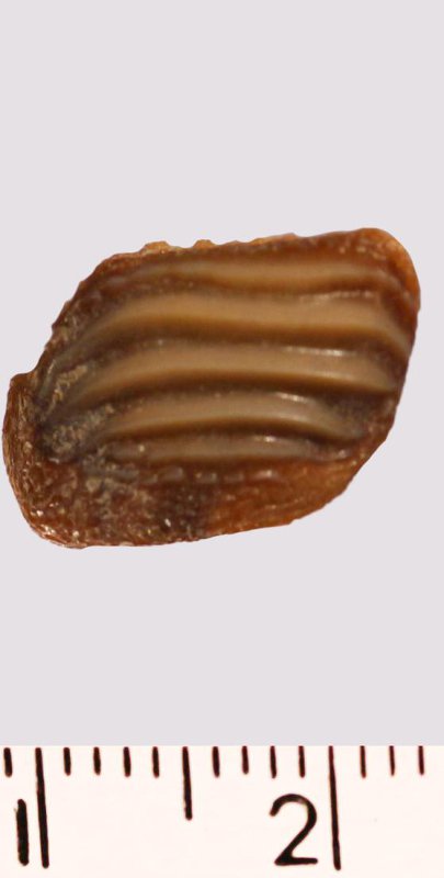 Зуб (фрагмент). Акула. Ptychodus latissimus Agassiz, 1843. Классификация: Хордовые Chordata, Позвоночные Vertebrata, Хрящевые рыбы Chondrichthyes, Пластиножаберные Elasmobranchii