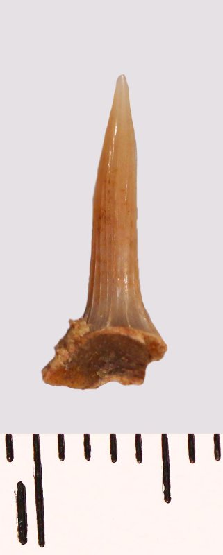 Зуб (фрагмент). Акула. Scapanorhynchus sp. Классификация: Хордовые Chordata, Позвоночные Vertebrata, Хрящевые рыбы Chondrichthyes, Пластиножаберные Elasmobranchii