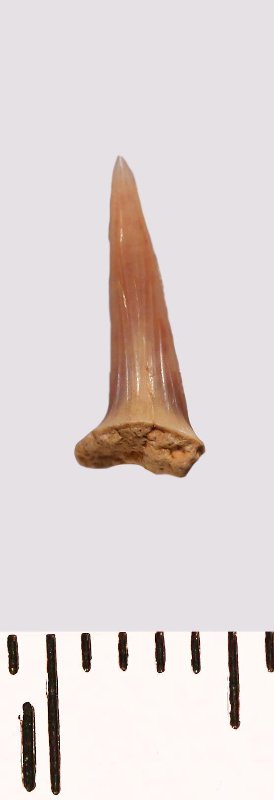 Зуб (фрагмент). Акула. Scapanorhynchus sp. Классификация: Хордовые Chordata, Позвоночные Vertebrata, Хрящевые рыбы Chondrichthyes, Пластиножаберные Elasmobranchii