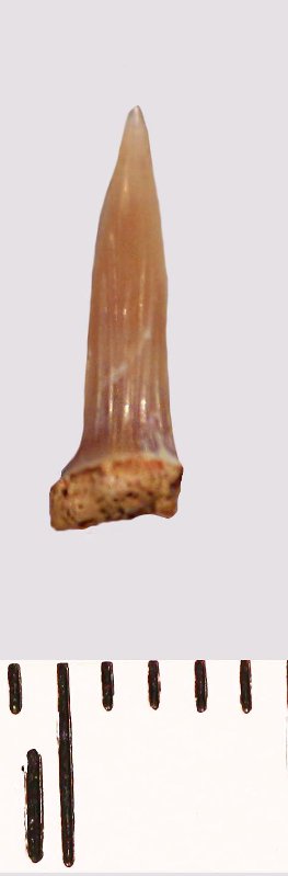 Зуб (фрагмент). Акула. Scapanorhynchus sp. Классификация: Хордовые Chordata, Позвоночные Vertebrata, Хрящевые рыбы Chondrichthyes, Пластиножаберные Elasmobranchii