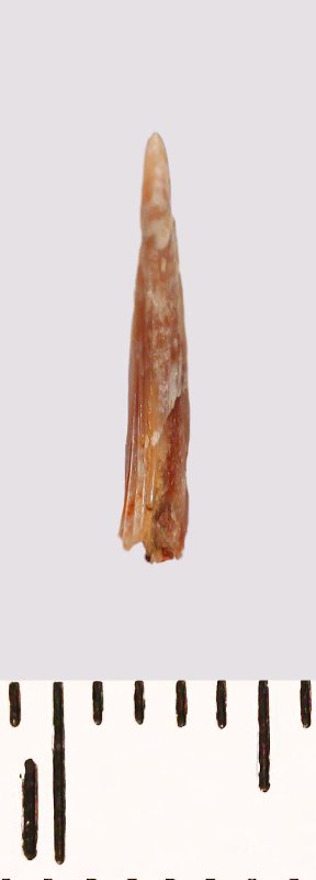 Зуб (фрагмент). Акула. Scapanorhynchus sp. Классификация: Хордовые Chordata, Позвоночные Vertebrata, Хрящевые рыбы Chondrichthyes, Пластиножаберные Elasmobranchii