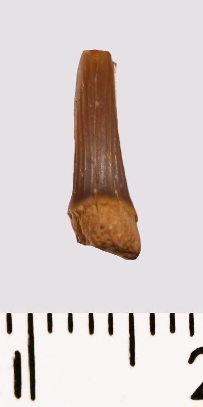 Зуб (фрагмент). Акула. Scapanorhynchus sp. Классификация: Хордовые Chordata, Позвоночные Vertebrata, Хрящевые рыбы Chondrichthyes, Пластиножаберные Elasmobranchii