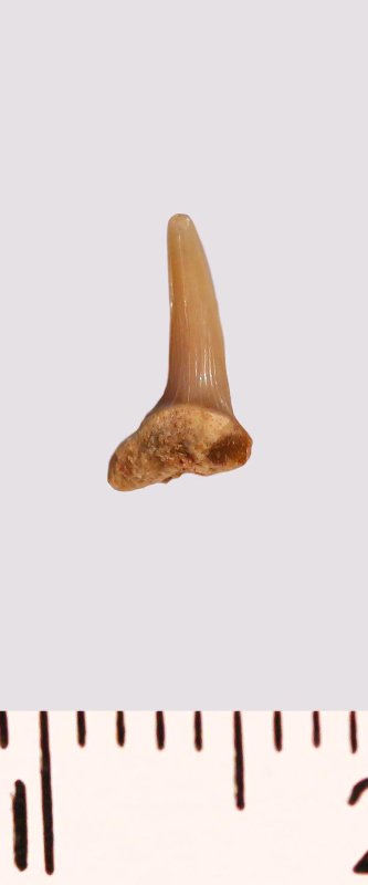 Зуб. Акула. Scapanorhynchus sp. Классификация: Хордовые Chordata, Позвоночные Vertebrata, Хрящевые рыбы Chondrichthyes, Пластиножаберные Elasmobranchii
