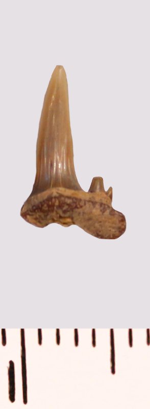 Зуб. Акула. Scapanorhynchus sp. Классификация: Хордовые Chordata, Позвоночные Vertebrata, Хрящевые рыбы Chondrichthyes, Пластиножаберные Elasmobranchii