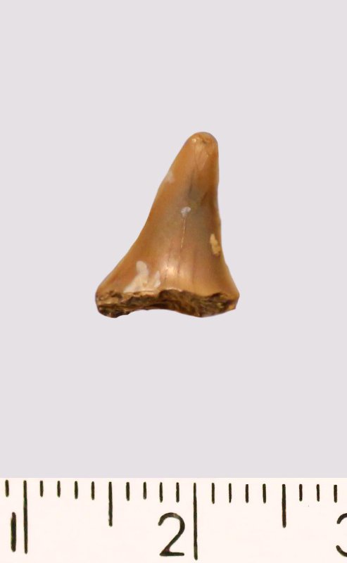 Зуб (фрагмент). Акула. Lamniformes gen. et sp. indet. Классификация: Хордовые Chordata, Позвоночные Vertebrata, Хрящевые рыбы Chondrichthyes, Пластиножаберные Elasmobranchii