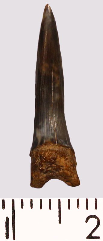 Зуб. Акула. Rhaphiodus sp. Классификация: Хордовые Chordata, Позвоночные Vertebrata, Хрящевые рыбы Chondrichthyes, Пластиножаберные Elasmobranchii