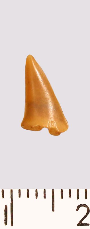 Зуб (фрагмент). Акула. Lamniformes gen. et sp. indet. Классификация: Хордовые Chordata, Позвоночные Vertebrata, Хрящевые рыбы Chondrichthyes, Пластиножаберные Elasmobranchii