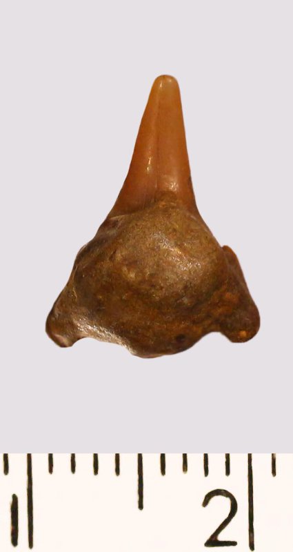 Зуб. Акула. Lamniformes gen. et sp. indet. Классификация: Хордовые Chordata, Позвоночные Vertebrata, Хрящевые рыбы Chondrichthyes, Пластиножаберные Elasmobranchii