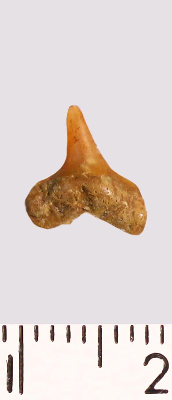 Зуб. Акула. Odontaspis angustidens (Reuss, 1845). Классификация: Хордовые Chordata, Позвоночные Vertebrata, Хрящевые рыбы Chondrichthyes, Пластиножаберные Elasmobranchii