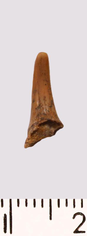 Зуб (фрагмент). Акула. Scapanorhynchus rapax Quaas, 1902. Классификация: Хордовые Chordata, Позвоночные Vertebrata, Хрящевые рыбы Chondrichthyes, Пластиножаберные Elasmobranchii