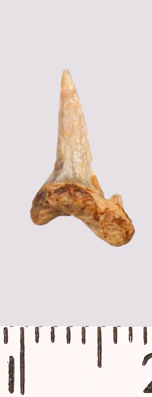 Зуб. Акула. Scapanorhynchus raphiodon (Agassiz, 1843). Классификация: Хордовые Chordata, Позвоночные Vertebrata, Хрящевые рыбы Chondrichthyes, Пластиножаберные Elasmobranchii