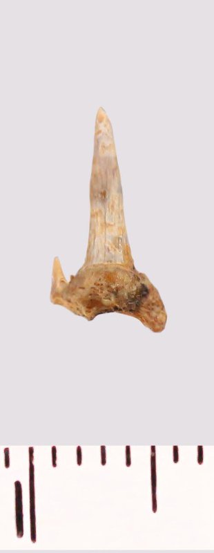 Зуб. Акула. Scapanorhynchus raphiodon (Agassiz, 1843). Классификация: Хордовые Chordata, Позвоночные Vertebrata, Хрящевые рыбы Chondrichthyes, Пластиножаберные Elasmobranchii