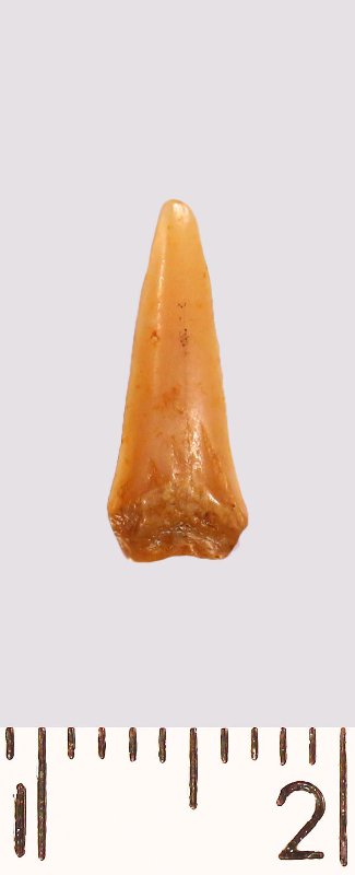 Зуб (фрагмент). Акула. Odontaspis venusta (Leriche, 1929). Классификация: Хордовые Chordata, Позвоночные Vertebrata, Хрящевые рыбы Chondrichthyes, Пластиножаберные Elasmobranchii