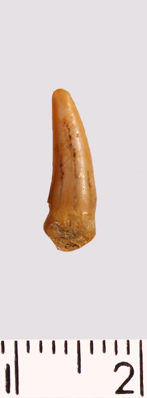 Зуб (фрагмент). Акула. Scapanorhynchus gigas Woodward 1889. Классификация: Хордовые Chordata, Позвоночные Vertebrata, Хрящевые рыбы Chondrichthyes, Пластиножаберные Elasmobranchii