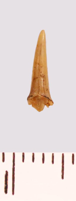 Зуб (фрагмент). Акула. Scapanorhynchus sp. Классификация: Хордовые Chordata, Позвоночные Vertebrata, Хрящевые рыбы Chondrichthyes, Пластиножаберные Elasmobranchii