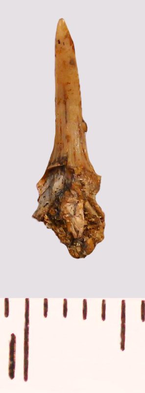 Зуб (фрагмент). Акула. Scapanorhynchus sp. Классификация: Хордовые Chordata, Позвоночные Vertebrata, Хрящевые рыбы Chondrichthyes, Пластиножаберные Elasmobranchii