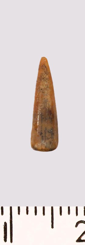 Зуб (фрагмент). Акула. Scapanorhynchus rapax Quaas, 1902. Классификация: Хордовые Chordata, Позвоночные Vertebrata, Хрящевые рыбы Chondrichthyes, Пластиножаберные Elasmobranchii