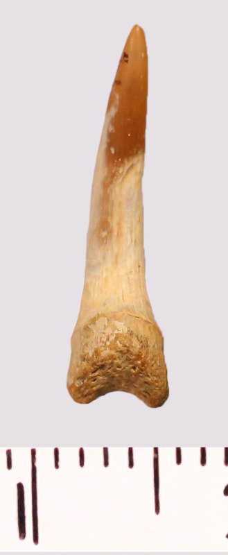 Зуб. Акула. Scapanorhynchus raphiodon (Agassiz, 1843). Классификация: Хордовые Chordata, Позвоночные Vertebrata, Хрящевые рыбы Chondrichthyes, Пластиножаберные Elasmobranchii