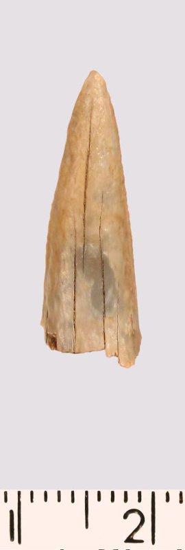 Зуб (фрагмент). Акула. Scapanorhynchus gigas Woodward 1889. Классификация: Хордовые Chordata, Позвоночные Vertebrata, Хрящевые рыбы Chondrichthyes, Пластиножаберные Elasmobranchii