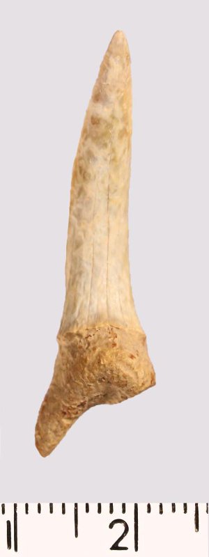 Зуб. Акула. Scapanorhynchus gigas Woodward 1889. Классификация: Хордовые Chordata, Позвоночные Vertebrata, Хрящевые рыбы Chondrichthyes, Пластиножаберные Elasmobranchii