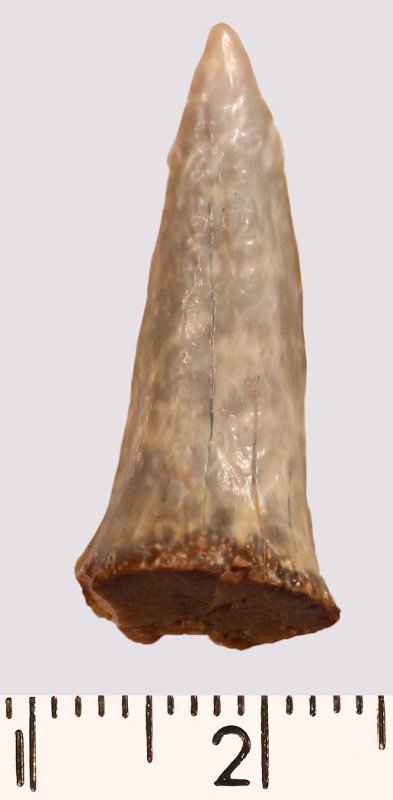 Зуб (фрагмент). Акула. Otodus semiplicatus Agassiz, 1843. Классификация: Хордовые Chordata, Позвоночные Vertebrata, Хрящевые рыбы Chondrichthyes, Пластиножаберные Elasmobranchii