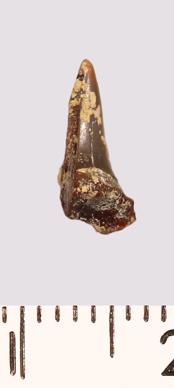 Зуб (фрагмент). Акула. Lamniformes gen. et sp. indet. Классификация: Хордовые Chordata, Позвоночные Vertebrata, Хрящевые рыбы Chondrichthyes, Пластиножаберные Elasmobranchii