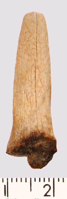 Зуб (фрагмент). Акула. Scapanorhynchus gigas Woodward 1889. Классификация: Хордовые Chordata, Позвоночные Vertebrata, Хрящевые рыбы Chondrichthyes, Пластиножаберные Elasmobranchii