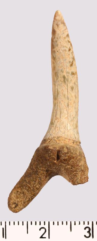 Зуб. Акула. Scapanorhynchus gigas Woodward 1889. Классификация: Хордовые Chordata, Позвоночные Vertebrata, Хрящевые рыбы Chondrichthyes, Пластиножаберные Elasmobranchii