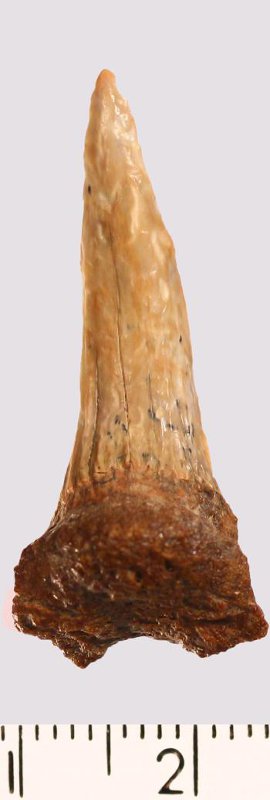 Зуб (фрагмент). Акула. Otodus semiplicatus Agassiz, 1843. Классификация: Хордовые Chordata, Позвоночные Vertebrata, Хрящевые рыбы Chondrichthyes, Пластиножаберные Elasmobranchii