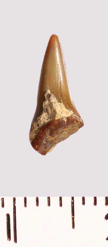 Зуб (фрагмент). Акула. Lamniformes gen. et sp. indet. Классификация: Хордовые Chordata, Позвоночные Vertebrata, Хрящевые рыбы Chondrichthyes, Пластиножаберные Elasmobranchii