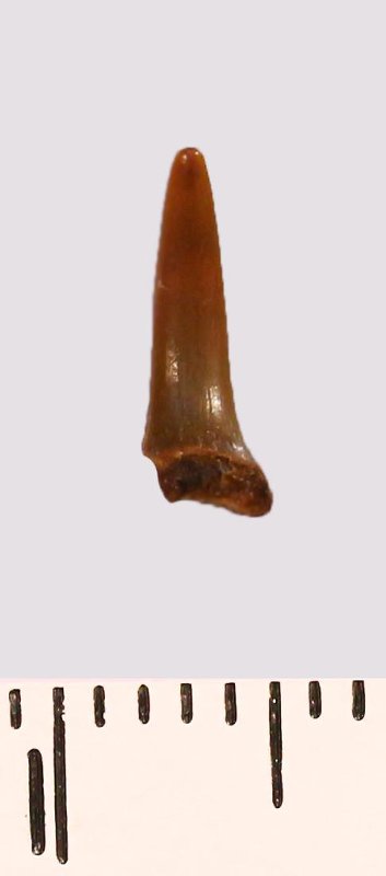 Зуб (фрагмент). Акула. Odontaspis ex gr. subulata (Agassiz, 1843). Классификация: Хордовые Chordata, Позвоночные Vertebrata, Хрящевые рыбы Chondrichthyes, Пластиножаберные Elasmobranchii