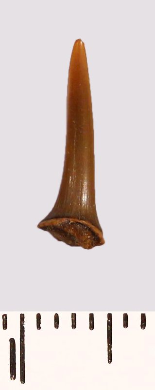Зуб (фрагмент). Акула. Scapanorhynchus sp. Классификация: Хордовые Chordata, Позвоночные Vertebrata, Хрящевые рыбы Chondrichthyes, Пластиножаберные Elasmobranchii