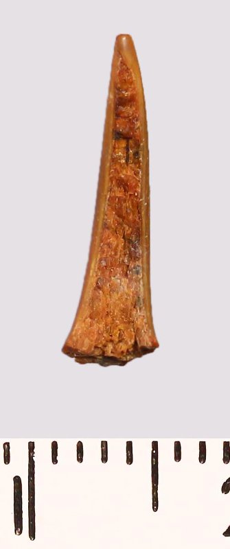Зуб (фрагмент). Акула. Scapanorhynchus sp. Классификация: Хордовые Chordata, Позвоночные Vertebrata, Хрящевые рыбы Chondrichthyes, Пластиножаберные Elasmobranchii