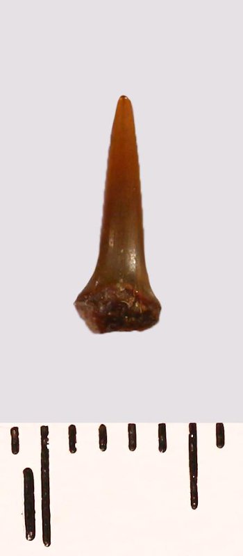 Зуб (фрагмент). Акула. Odontaspis ex gr. subulata (Agassiz, 1843). Классификация: Хордовые Chordata, Позвоночные Vertebrata, Хрящевые рыбы Chondrichthyes, Пластиножаберные Elasmobranchii