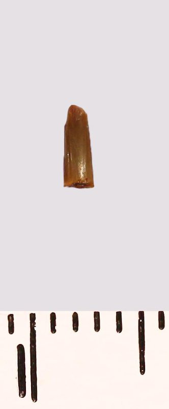 Зуб (фрагмент). Акула. Odontaspis ex gr. subulata (Agassiz, 1843). Классификация: Хордовые Chordata, Позвоночные Vertebrata, Хрящевые рыбы Chondrichthyes, Пластиножаберные Elasmobranchii