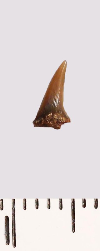 Зуб (фрагмент). Акула. Odontaspis ex gr. subulata (Agassiz, 1843). Классификация: Хордовые Chordata, Позвоночные Vertebrata, Хрящевые рыбы Chondrichthyes, Пластиножаберные Elasmobranchii