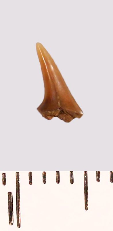Зуб (фрагмент). Акула. Odontaspis ex gr. subulata (Agassiz, 1843). Классификация: Хордовые Chordata, Позвоночные Vertebrata, Хрящевые рыбы Chondrichthyes, Пластиножаберные Elasmobranchii