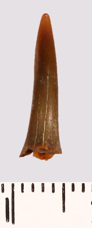 Зуб (фрагмент). Акула. Scapanorhynchus sp. Классификация: Хордовые Chordata, Позвоночные Vertebrata, Хрящевые рыбы Chondrichthyes, Пластиножаберные Elasmobranchii