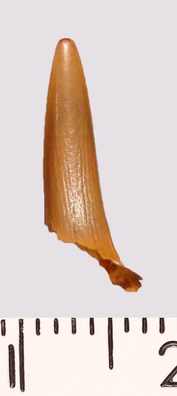 Зуб (фрагмент). Акула. Rhaphiodus sp. Классификация: Хордовые Chordata, Позвоночные Vertebrata, Хрящевые рыбы Chondrichthyes, Пластиножаберные Elasmobranchii