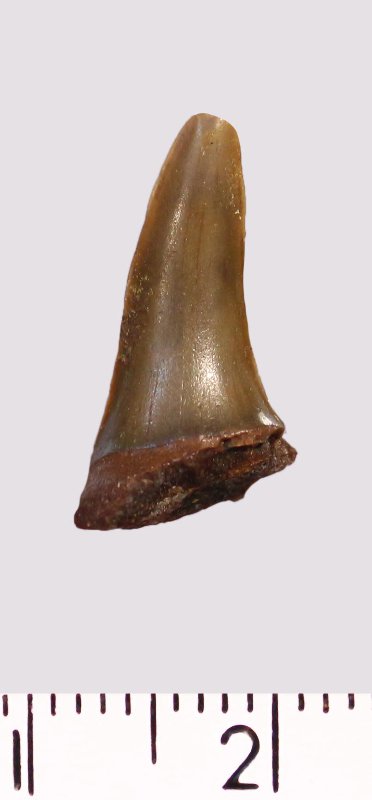 Зуб (фрагмент). Акула. Scapanorhynchus gigas Woodward, 1889. Классификация: Хордовые Chordata, Позвоночные Vertebrata, Хрящевые рыбы Chondrichthyes, Пластиножаберные Elasmobranchii