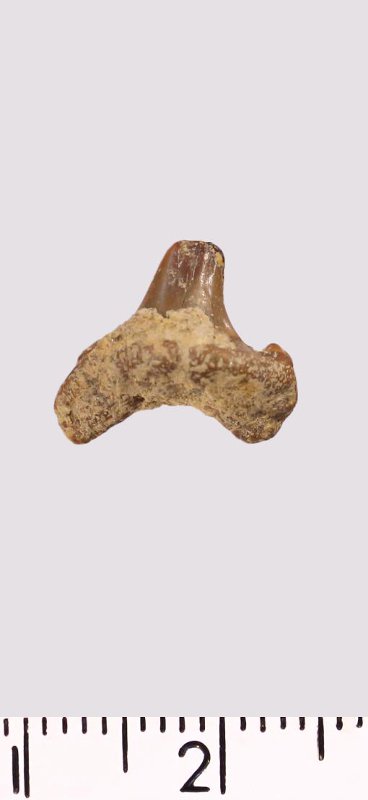 Зуб. Акула. Scapanorhynchus gigas Woodward, 1889. Классификация: Хордовые Chordata, Позвоночные Vertebrata, Хрящевые рыбы Chondrichthyes, Пластиножаберные Elasmobranchii