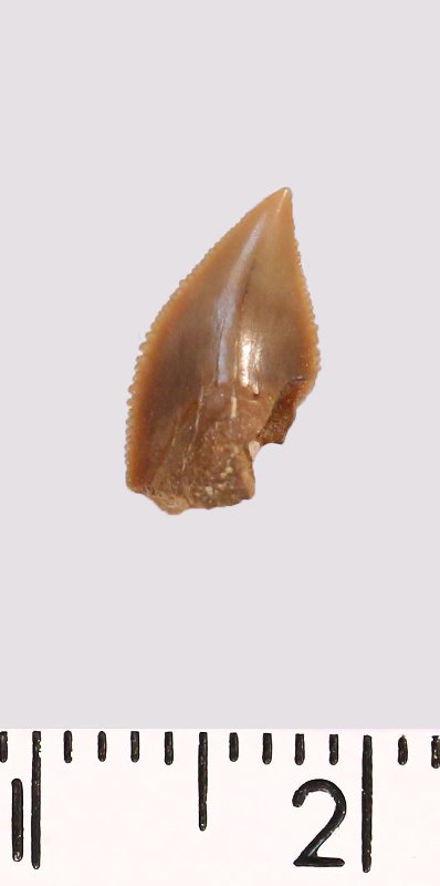 Зуб (фрагмент). Акула. Anacorax sp. Классификация: Хордовые Chordata, Позвоночные Vertebrata, Хрящевые рыбы Chondrichthyes, Пластиножаберные Elasmobranchii