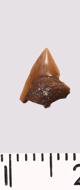 Зуб (фрагмент). Акула. Anacorax sp. Классификация: Хордовые Chordata, Позвоночные Vertebrata, Хрящевые рыбы Chondrichthyes, Пластиножаберные Elasmobranchii