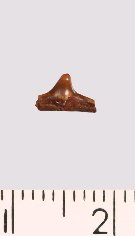 Зуб. Акула. Squatina sp. Классификация: Хордовые Chordata, Позвоночные Vertebrata, Хрящевые рыбы Chondrichthyes, Пластиножаберные Elasmobranchii
