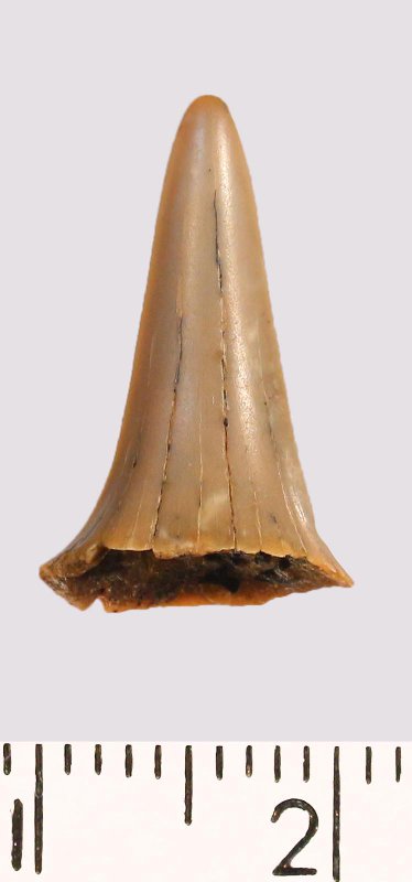 Зуб (фрагмент). Акула. Lamniformes gen. et sp. indet. Классификация: Хордовые Chordata, Позвоночные Vertebrata, Хрящевые рыбы Chondrichthyes, Пластиножаберные Elasmobranchii
