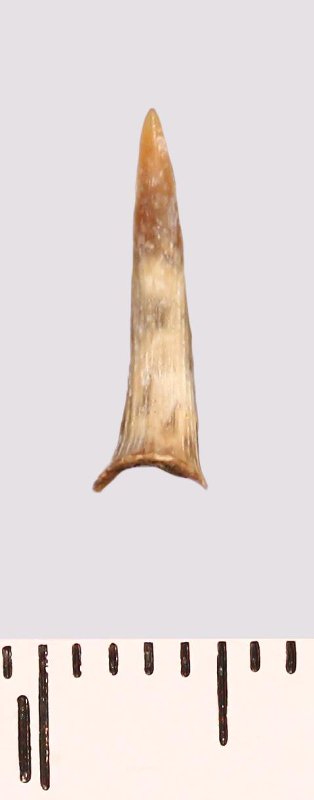 Зуб (фрагмент). Акула. Scapanorhynchus raphiodon (Agassiz, 1843). Классификация: Хордовые Chordata, Позвоночные Vertebrata, Хрящевые рыбы Chondrichthyes, Пластиножаберные Elasmobranchii