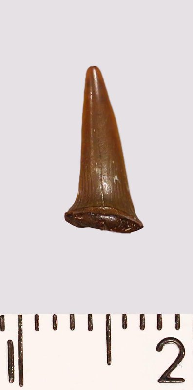 Зуб (фрагмент). Акула. Rhaphiodus sp. Классификация: Хордовые Chordata, Позвоночные Vertebrata, Хрящевые рыбы Chondrichthyes, Пластиножаберные Elasmobranchii