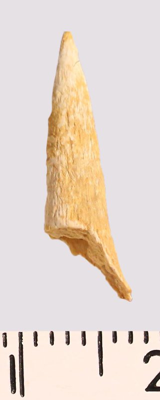 Зуб (фрагмент). Акула. Scapanorhynchus raphiodon (Agassiz, 1843). Классификация: Хордовые Chordata, Позвоночные Vertebrata, Хрящевые рыбы Chondrichthyes, Пластиножаберные Elasmobranchii