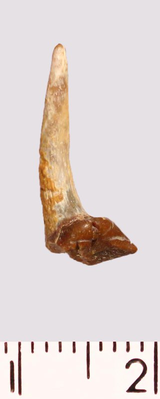Зуб (фрагмент). Акула. Scapanorhynchus raphiodon (Agassiz, 1843). Классификация: Хордовые Chordata, Позвоночные Vertebrata, Хрящевые рыбы Chondrichthyes, Пластиножаберные Elasmobranchii
