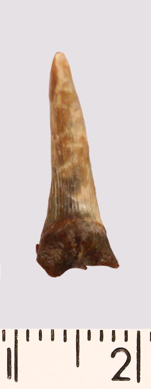 Зуб (фрагмент). Акула. Scapanorhynchus raphiodon (Agassiz, 1843). Классификация: Хордовые Chordata, Позвоночные Vertebrata, Хрящевые рыбы Chondrichthyes, Пластиножаберные Elasmobranchii